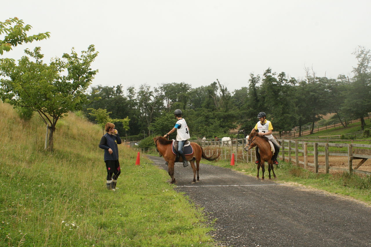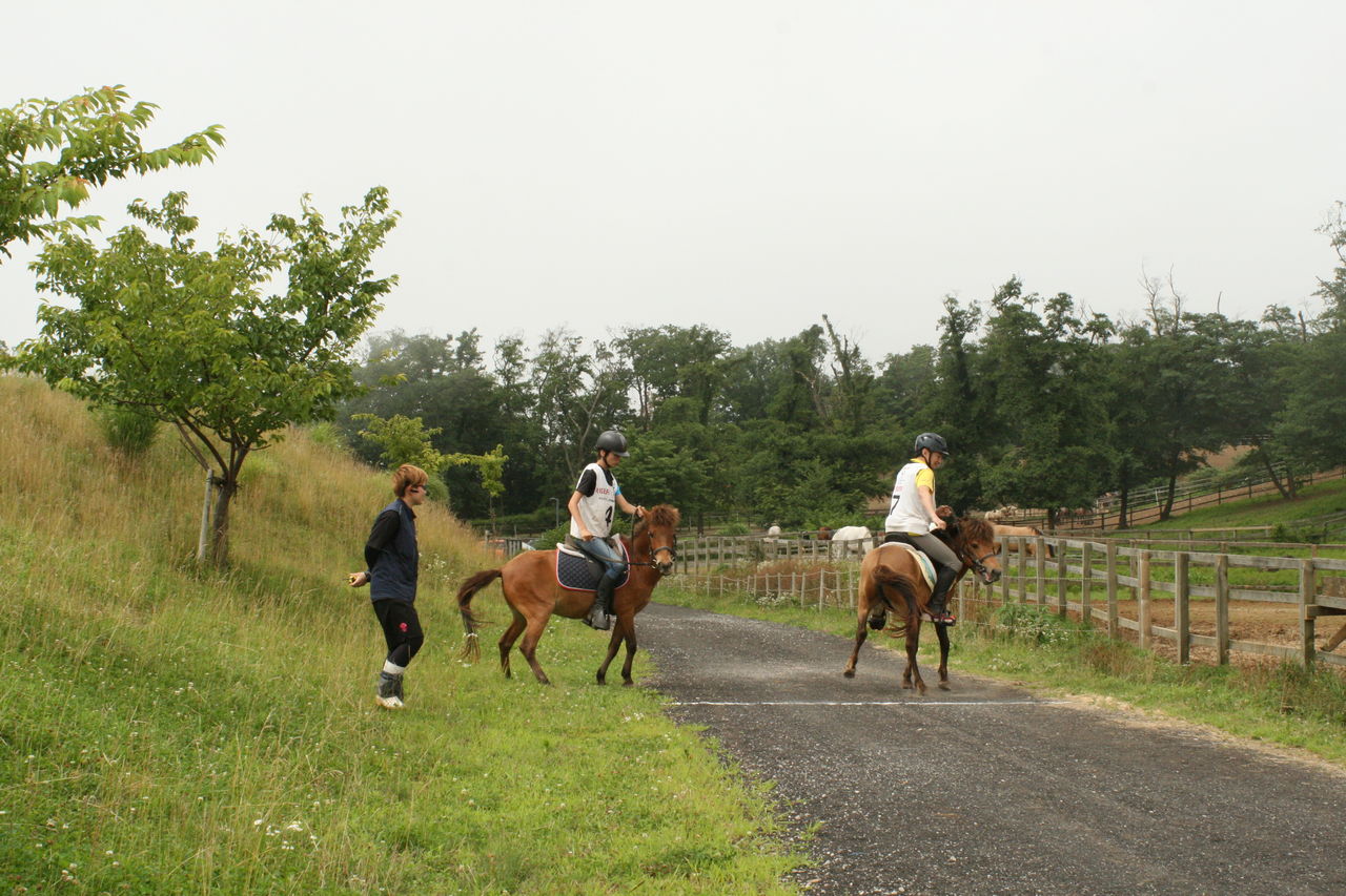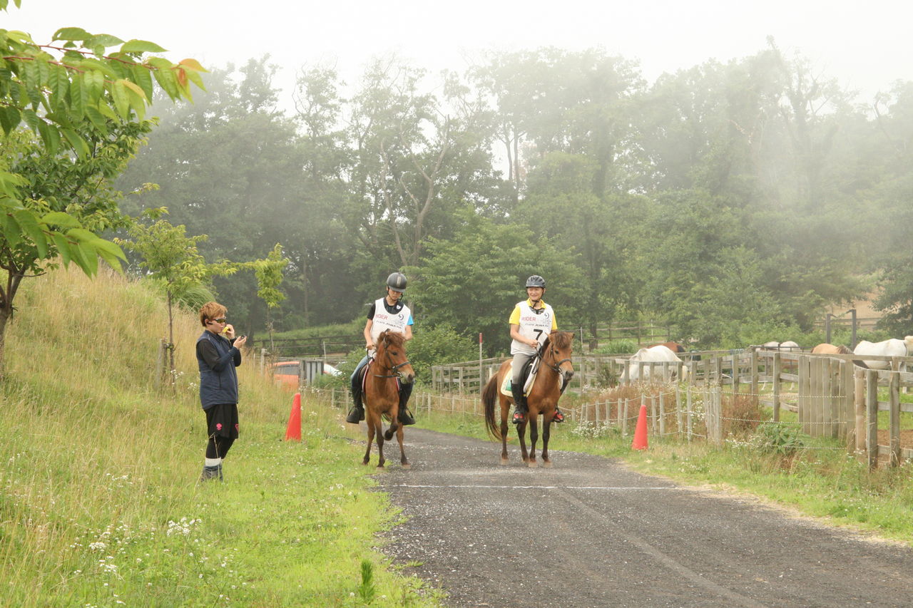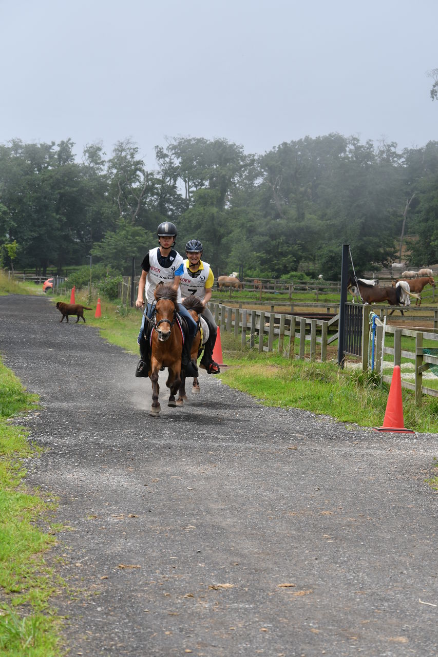 そして1頭ずつ実際のコースで練習走行。今日は暑いせいか、いつもなら一緒に暴れ回る放牧場のアラブたちは無反応でした・・・