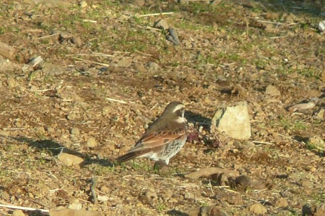 ツグミです。上の2種と違い、冬だけいます。「キョキョッ」と鳴いて、テンツク地面を這っています。