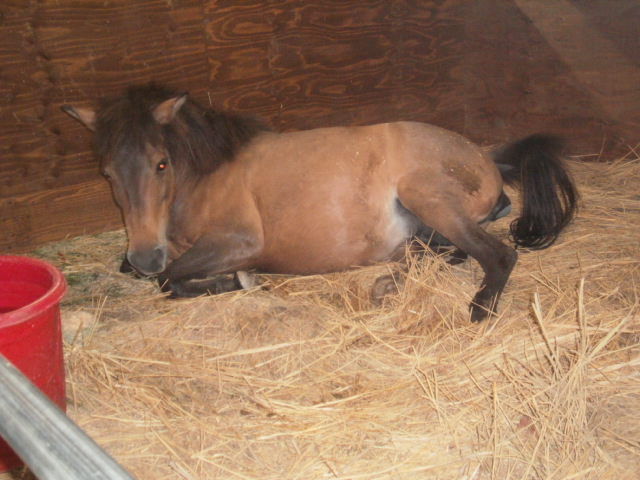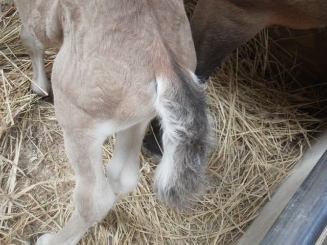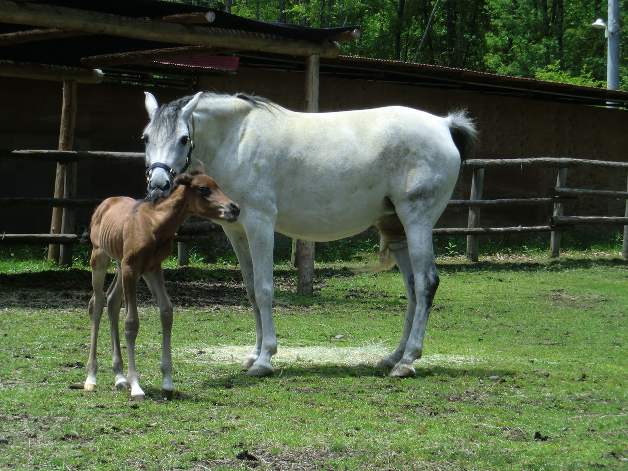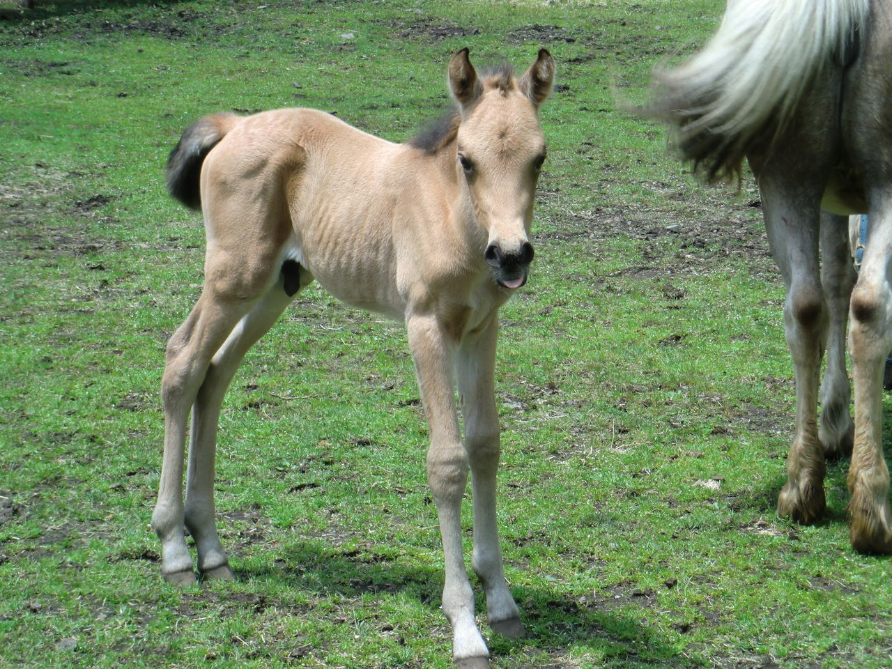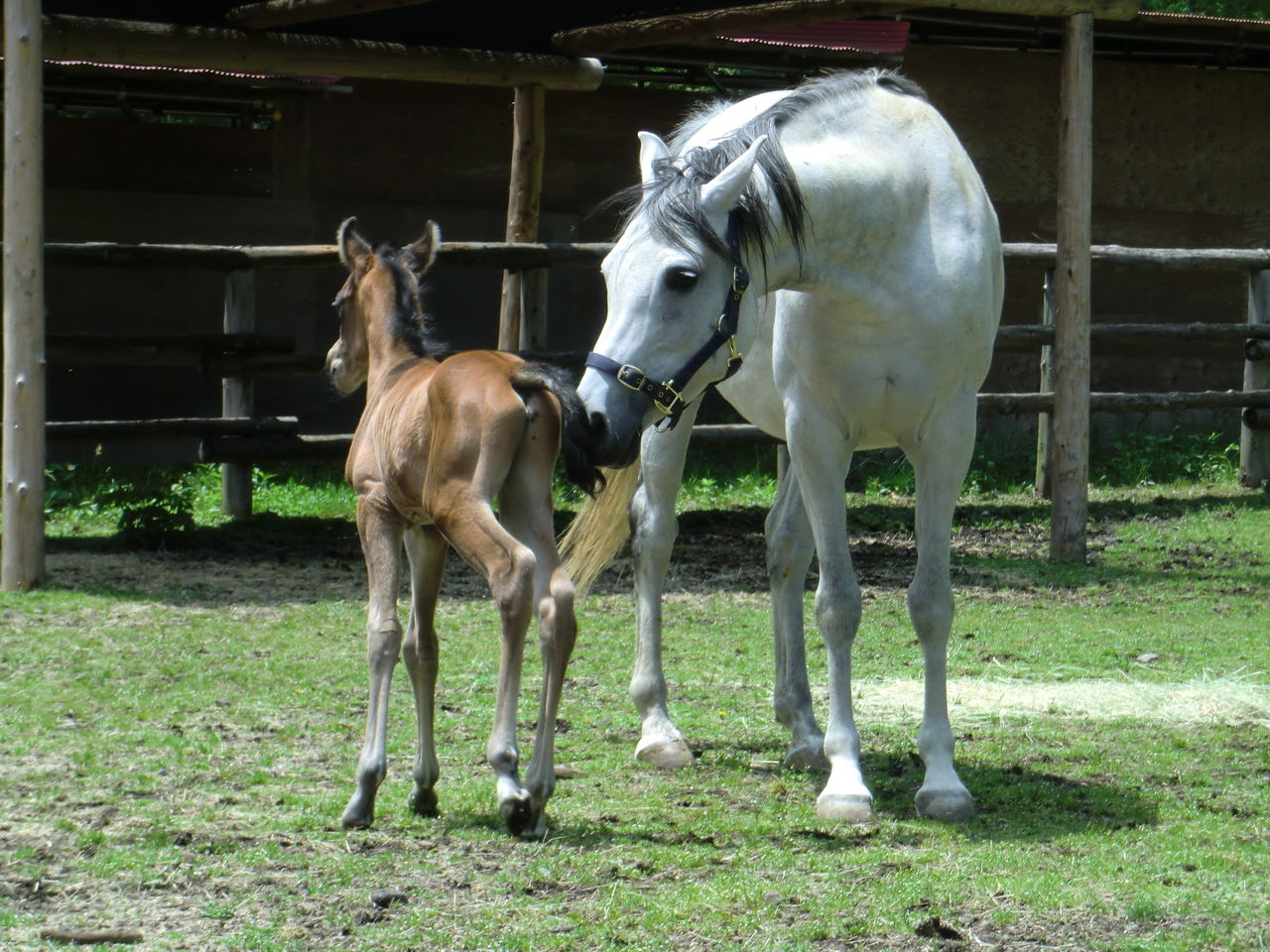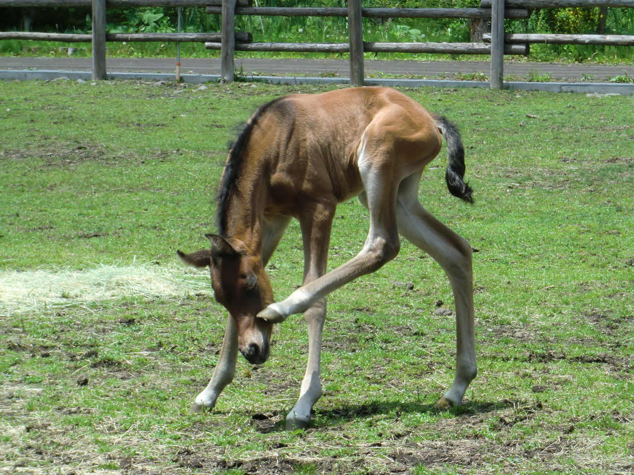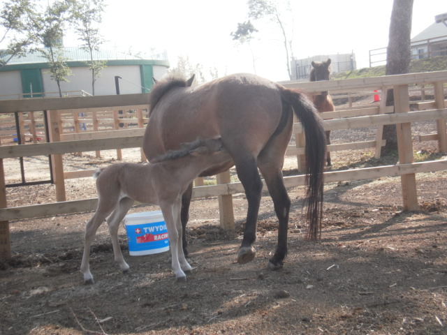 ララは子馬がお乳を飲みやすいように片足を上げています
