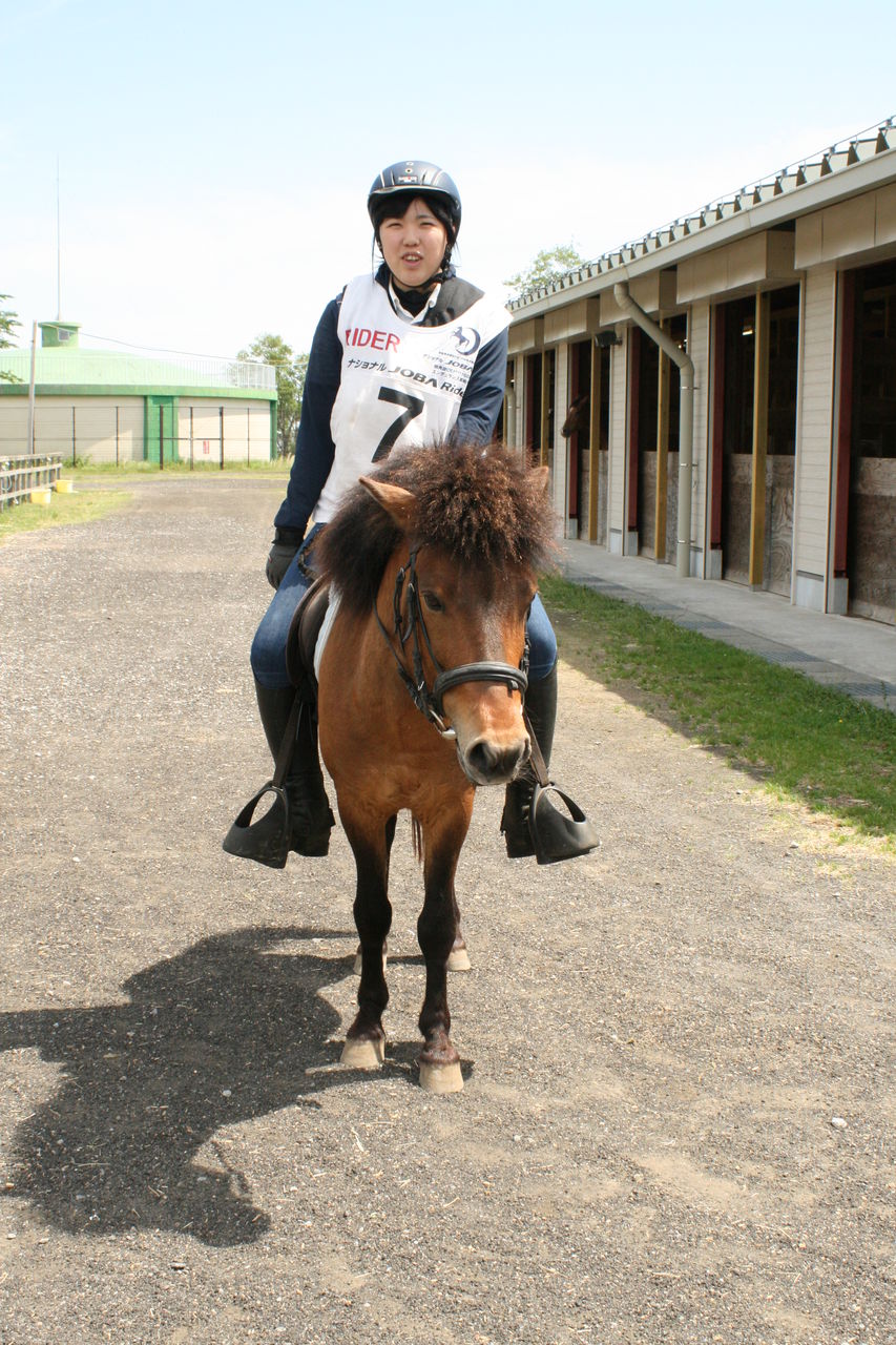 馬房では隣の花子に大興奮だったが、いざ乗るといたって冷静。練習走行も難なくこなし、本番へ。スタートは好調でファインからリードを奪い、途中物見でよれながらも1着!2レース目もハンデなしでスタートからファインを引き離す!しかしそこは父の威厳かあっという間に差されてしまいました…。前回の勝利は斤量差のお陰だったのか!?それでも良く頑張ってくれました!ありがとうモッチ!!