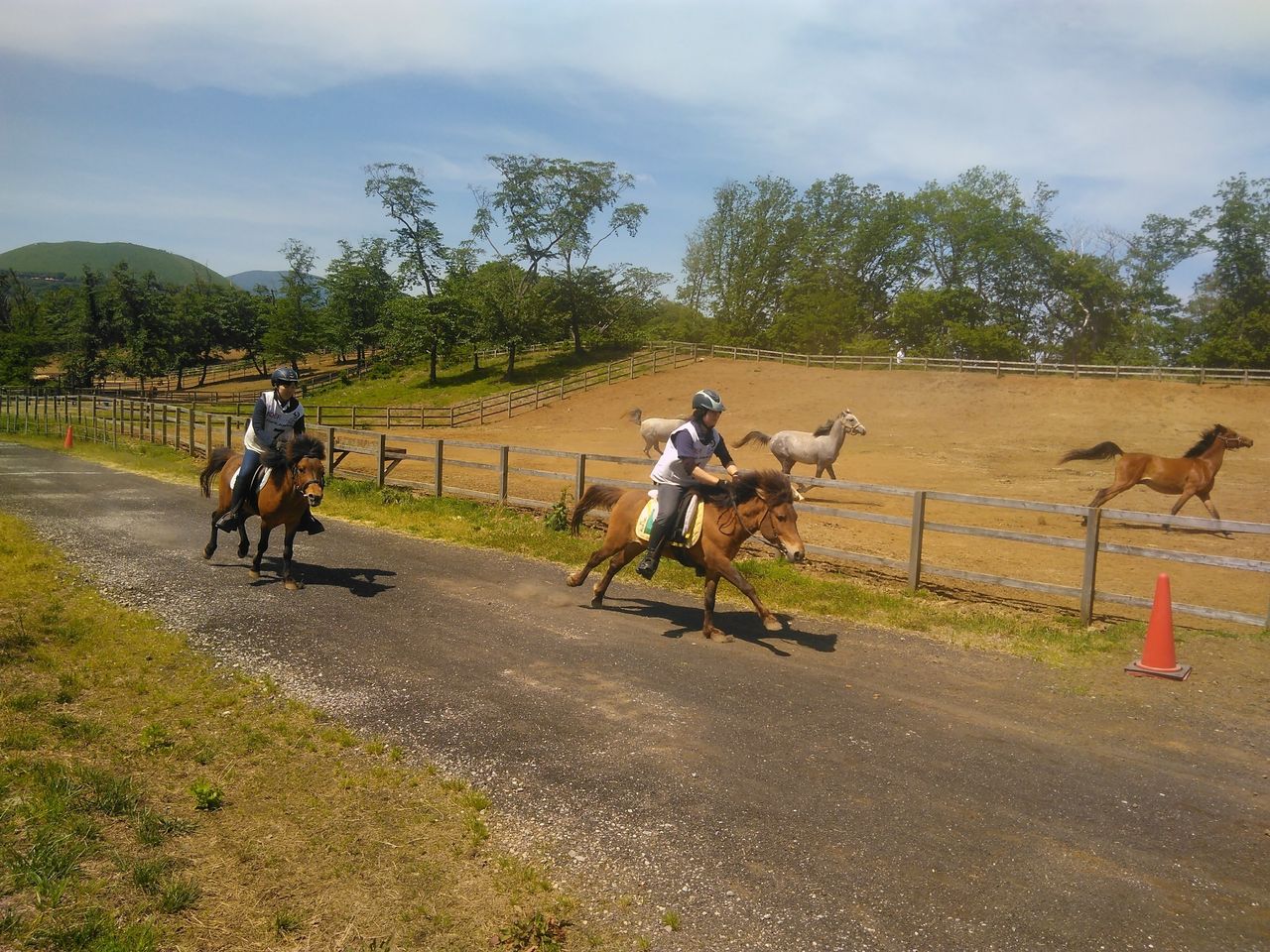 放牧場の端から端まで勝手に参加してくれました